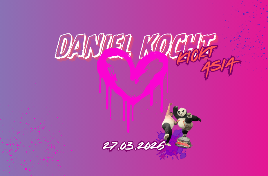 Am 27.03.2026 gehts weiter mit "Daniel kocht/kickt - Asia" im "alten Weinkeller". Bestellt am besten so schnell wie möglich, hier euer Ticket für einen coolen Abend, mit geilem Essen, ganz viel Herz, Alexa & mir.