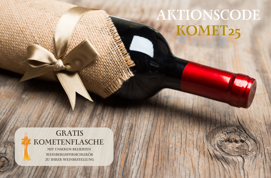 Ab einer Bestellung von 12 Flaschen in unserem Shop, legen wir Ihnen die versprochene "KOMETENFLASCHE" kostenlos der Lieferung bei. Sie müssen nur den Aktionscode KOMET25 beim Bezahlvorgang eingeben. Wir wünschen Ihnen eine besinnliche Adventszeit, ein frohes Weihnachtsfest sowie Gesundheit, Glück und Zufriedenheit im neuen Jahr.